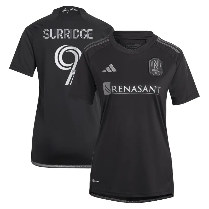 Women’s Nashville SC Sam Surridge adidas Black 2023 Man In Black Kit Replica Player Jersey