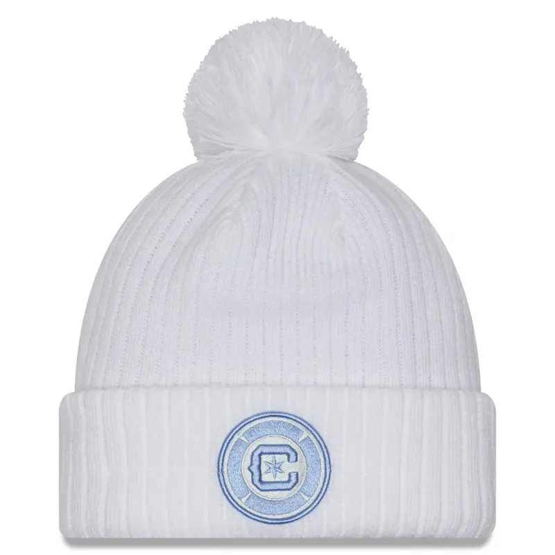 Men’s Chicago Fire New Era White 2025 Jersey Hook Cuffed Knit Hat with Pom
