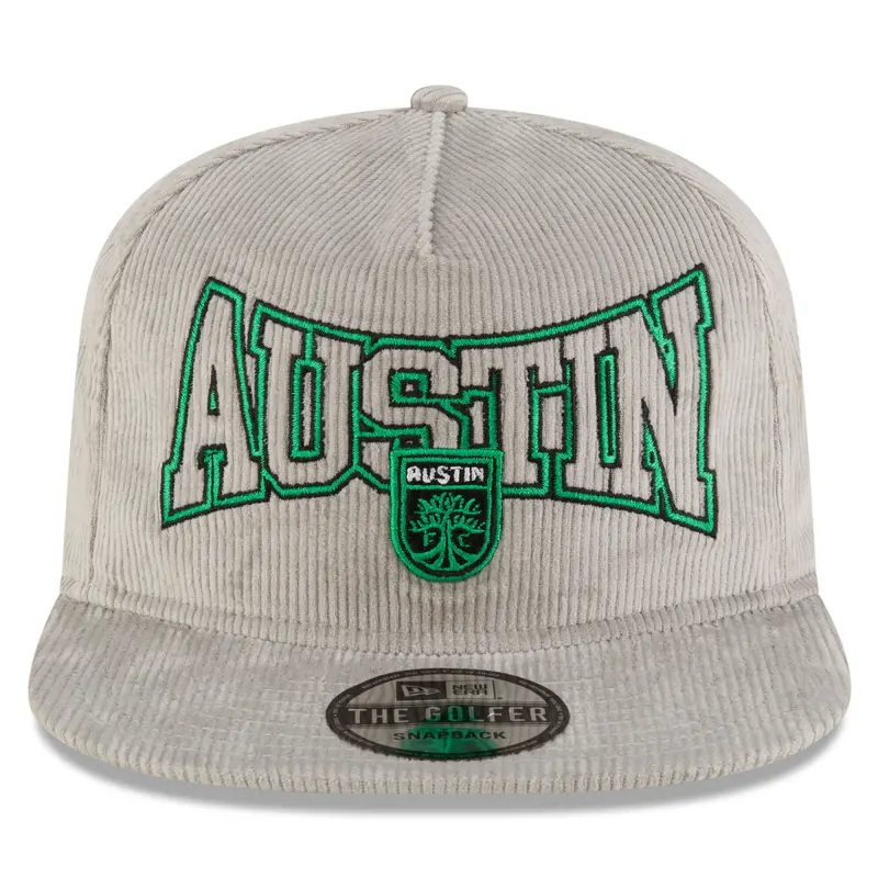 Show off your Austin FC pride in this Corduroy Golfer Adjustable Hat from New Era. This hat boasts a unique corduroy fabric, giving it a vintage look and feel that's perfect for any fan of the Verde and Black. Featuring a five-panel construction with mid and rear eyelets, this hat is designed for both style and breathability.