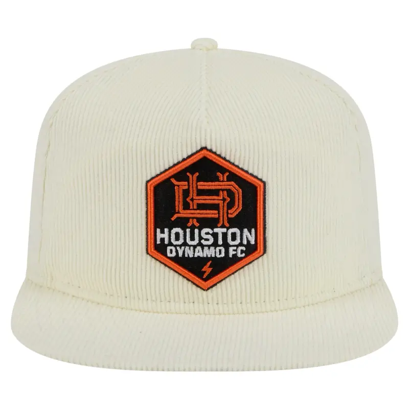 Hit the links in style with this Houston Dynamo FC 2025 Kickoff Snapback Golfer Hat from New Era. This Houston Dynamo FC hat features a unique five-panel construction with a pinched A-frame design on the front for a modern take on a classic look. The corduroy fabric adds a vintage feel, while the embroidered Houston Dynamo FC logo on the front and MLS shield on the back proudly display your team pride.