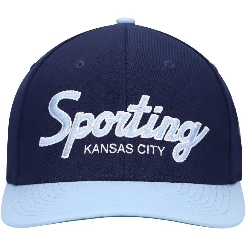 Men’s Sporting Kansas City Mitchell & Ness Navy Team Script 2.0 Stretch Snapback Hat