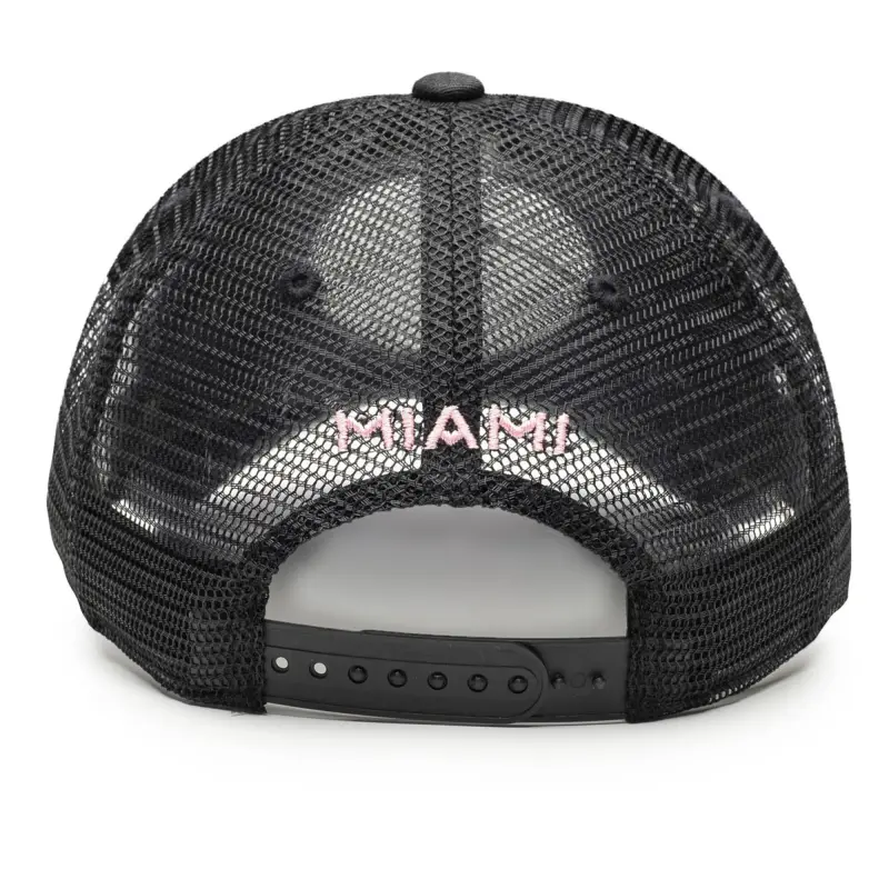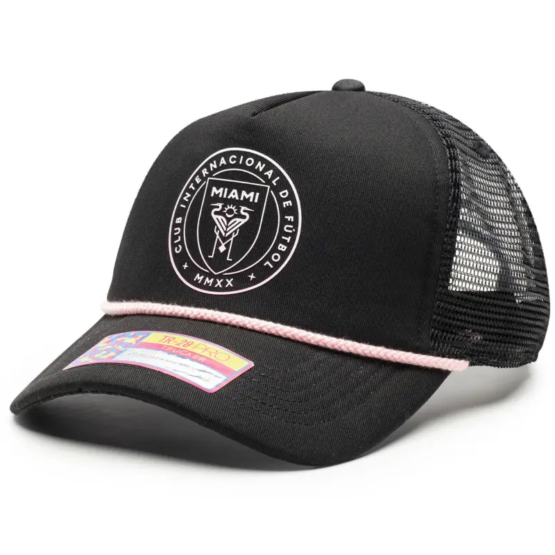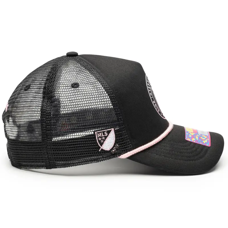 - Complete your Inter Miami CF game day look with this Atmosphere Adjustable Trucker Hat. This stylish trucker hat features a unique blend of materials, including a heat-sealed applique on the front and an embroidered patch on the right panel. Four mesh mid and rear panels provide breathability, ensuring you stay cool and comfortable whether you’re cheering from the stands or enjoying a sunny day out.