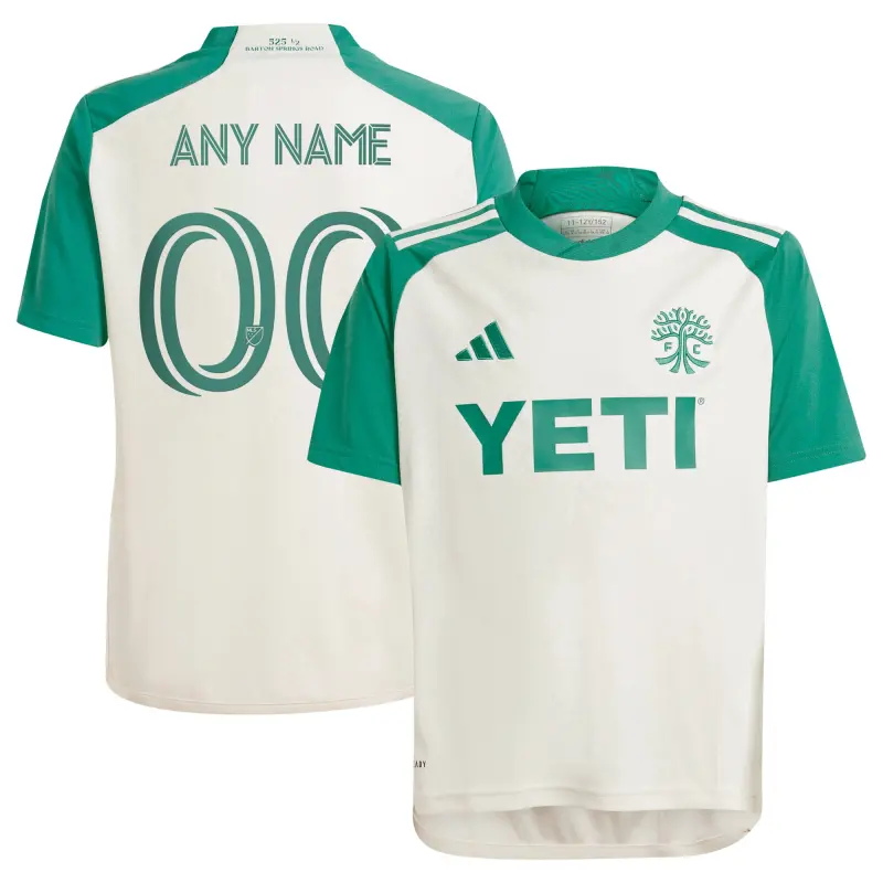 We want fans to celebrate their fandom by customizing and personalizing certain products. For these customizable products, including jerseys, we invite customers to tell us how they would like their preferred name or other text to appear by typing that text into the field indicated. However, just because a customer is able to type proposed customization text into the field and is able to complete the order through the website, not all proposed customization text will be accepted. Please note, Fanatics may reject and cancel any customization order for any reason, including for messages that are deemed offensive or inappropriate. Help your youngster represent "The Live Music Capital of the World" every time they dawn this Austin FC 2024 The Armadillo Kit Replica Custom Jersey from adidas. This Austin FC jersey features AEROREADY technology to keep them light on their feet on and off the pitch. With colors and graphics matching the Armadillo World Headquarters, this is the perfect kit for ATX's youth.